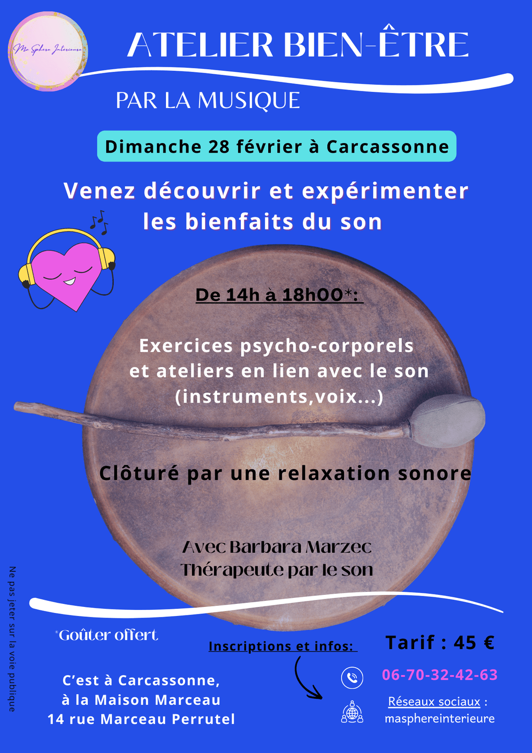 Venez participer à un atelier qui allie le bien-être avec et par la musique